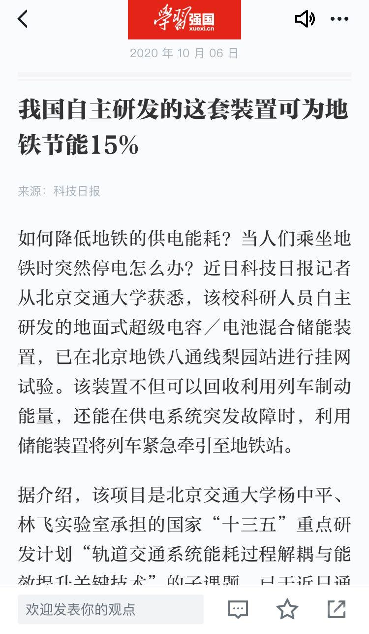 学习强国:我国自主研发的这套装置可为地铁节能15%