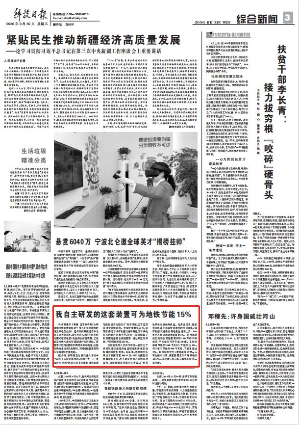 科技日报:我自主研发的这套装置可为地铁节能15%