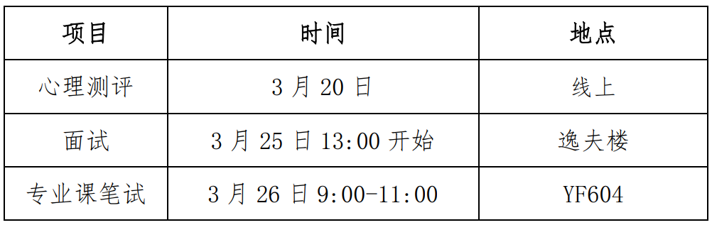 所有考生面试当天中午12:40前到达备考教室YF604备考,备考期间不得使用手机、智能手表等通讯设备。备考期间根据工作人员的引领完成面试。