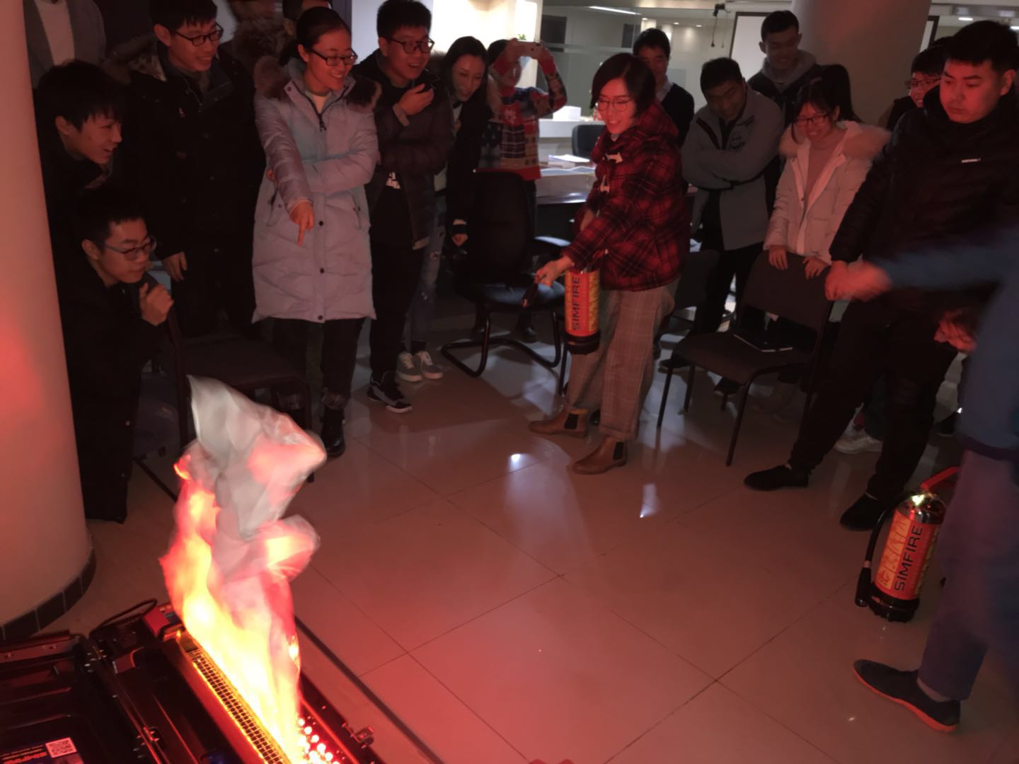 实验室师生进行灭火练习
