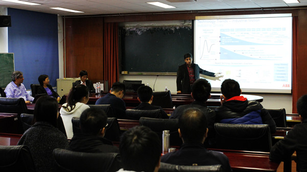 ABB客人为公司部分研究生和老师介绍了有关电力电子前沿技术和设备。Waqas M. Arshad主要介绍了电力电子国际前沿技术和ABB取得的新成果。Francisco Canales主要介绍了电动车充电低中压电力电子变换器等新技术。刘前进主任介绍了集团近期发布的高压电缆、电动汽车壁挂式充电设备等新产品、新技术。