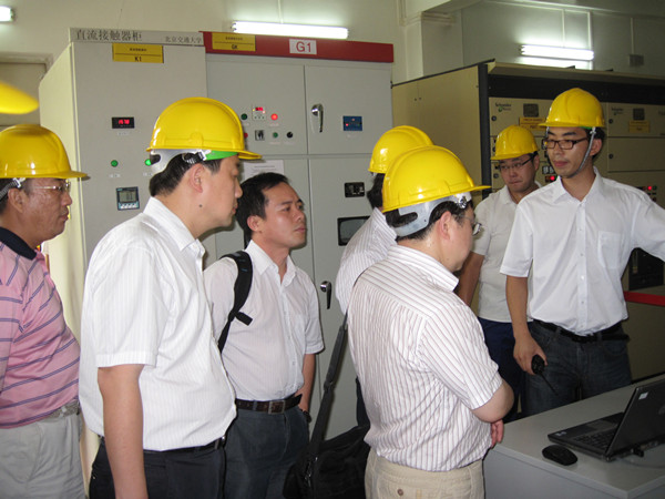 专家组在广州地铁4 号线新造车辆段变电所能馈式牵引供电装置挂网实验现场