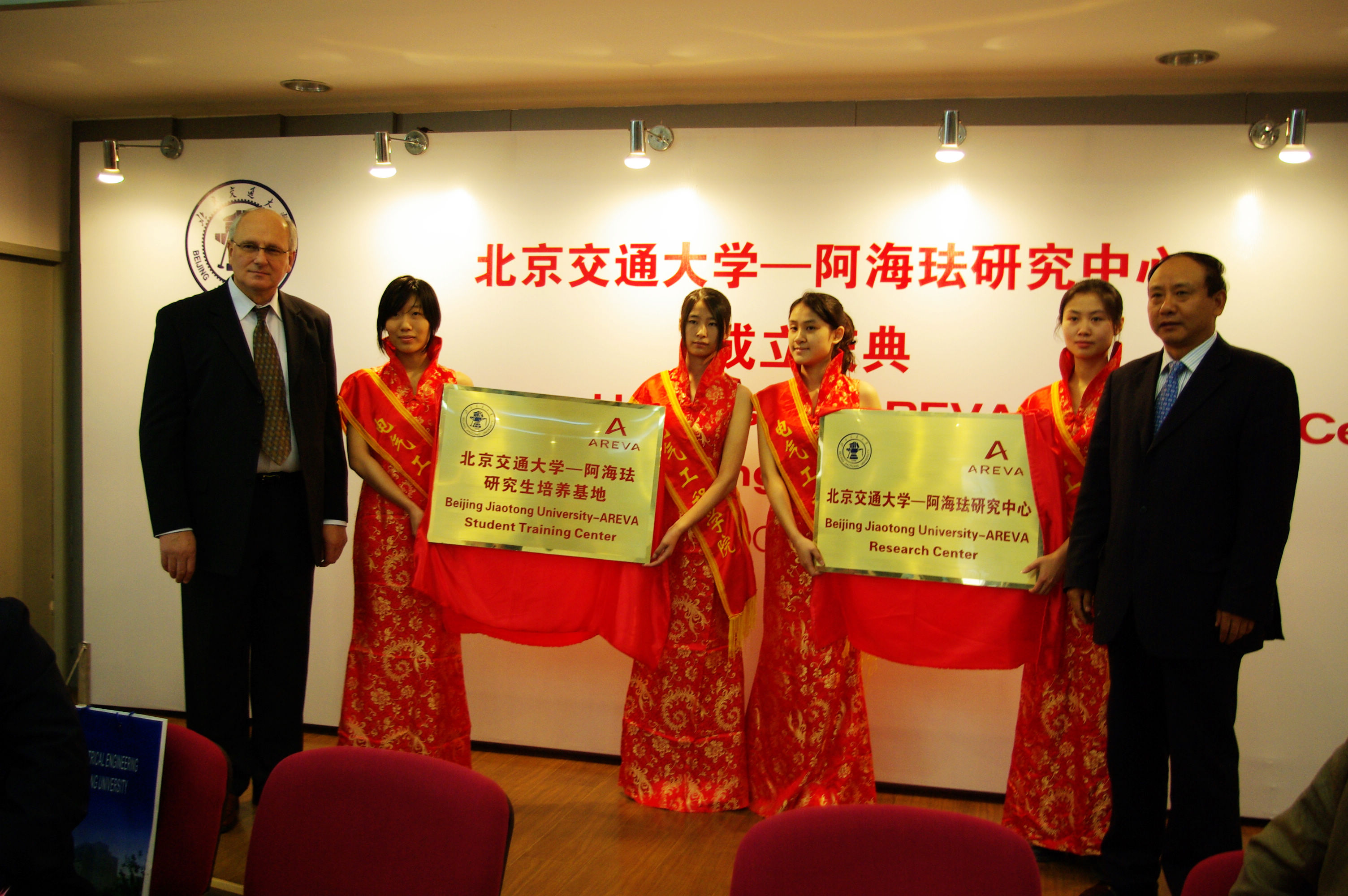 法国AREVA集团是世界500强企业之一, AREVA输配电是世界三大主要输配电集团之一,是从事能源业务的全球性专业化集团“研究中心”和“培养基地”是继今年一月双方签署的科研项目合作之后的进一步交流与合作。由李学伟副董事长和Andrew Klimek先生代表双方签署了合作协议并共同为“研究中心”和“培养基地”揭牌。公司国际交流与合作处邓新华副处长,研究生院刘志刚副经理,电气学院领导以及相关教师也参加了庆典。
