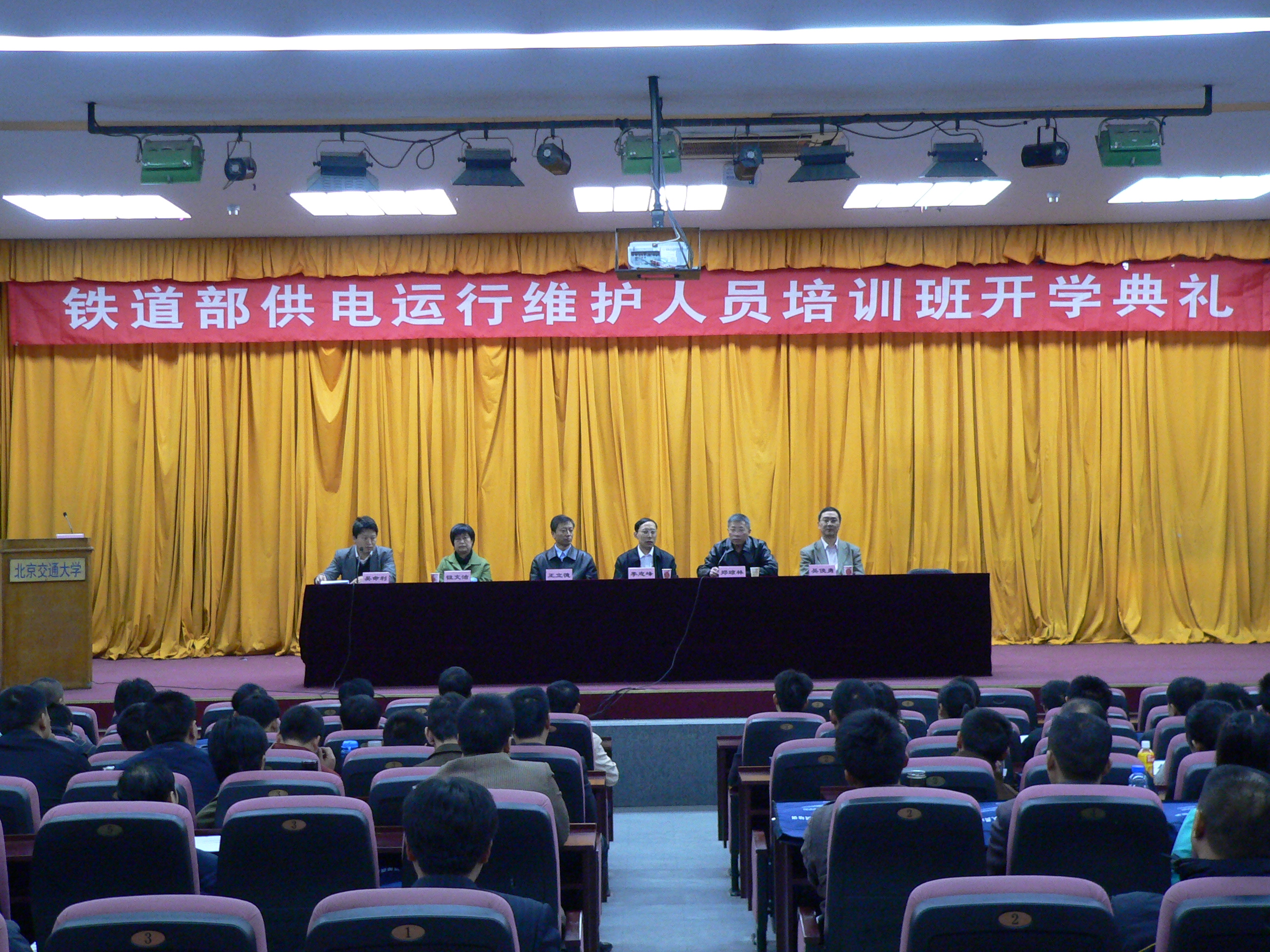 2008年11月2日上午9:00,在中心报告厅举行了铁道部供电运行维护人员培训班开学典礼。本次培训学员共计540人,分三期举办,每期设供变电值班、检修骨干班和接触网工、电力工骨干班两个班,每班90人。学员来自全国18个铁路局(集团、公司)的44个供电段,全部为中级以上的专业技能骨干。