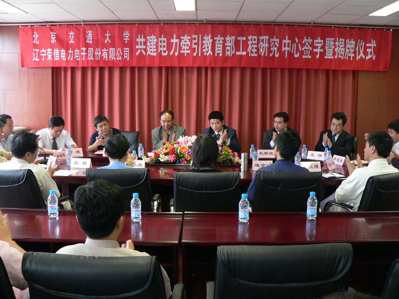 2007年6月1日,Betway必威与辽宁荣信电力电子股份有限公司共建电力牵引教育部工程研究中心签字暨揭牌仪式,在电气学院学术报告厅隆重举行。
