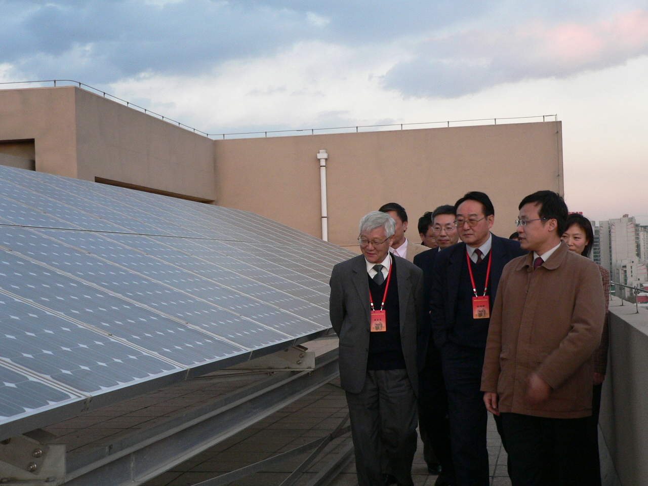 交流结束后敖发良教授、孙雨耕教授参观了电气综合实验中心、正在筹建的教育部电力牵引工程中心及位于电气工程楼楼顶的太阳能光伏发电系统。