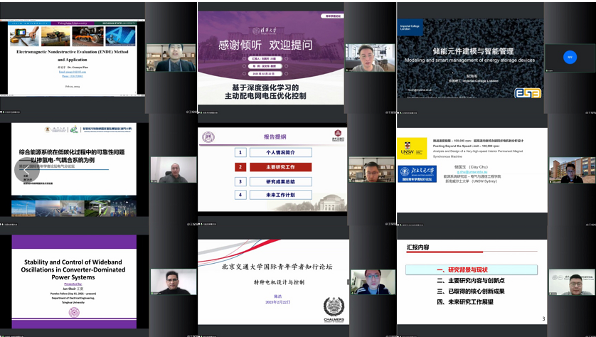 随后,9位青年学者分别介绍了学习历程、工作经历,并分享他们的科研成果,报告内容涵盖了电机设计与控制、综合能源系统、储能系统、电磁检测评估等诸多领域。青年学者与参会的师生们进行了热烈的交流与探讨。