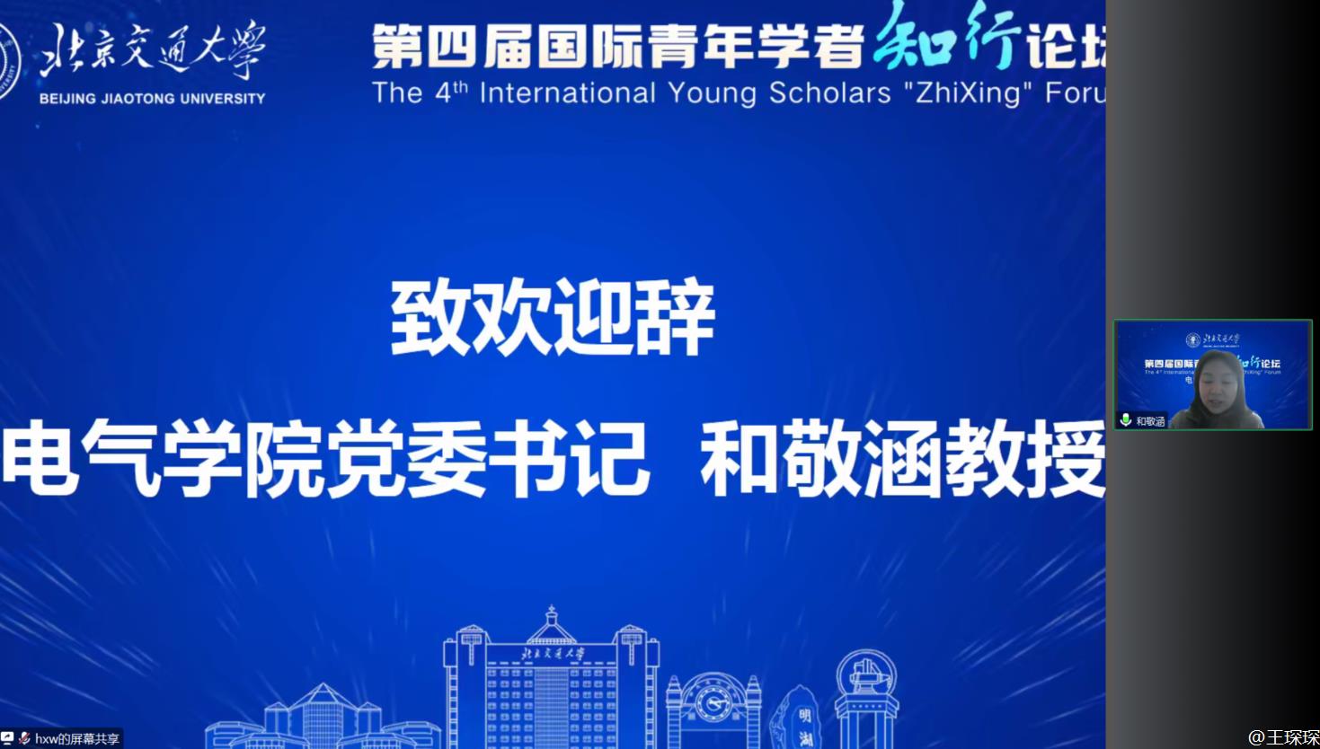 和敬涵书记致欢迎辞,她向参加论坛的各位青年学者表示热烈的欢迎。她指出2023年是全面贯彻落实党的二十大精神的开局之年,迈入新发展阶段,人才是关键。Betway必威高度重视青年人才的队伍建设工作,始终将青年教师的自身成长与学院的发展建设紧密结合。举办青年学者论坛旨在吸引汇聚一批海内外优秀青年学者共同交流,增进了解。她希望此次论坛的成功举办能够使广大青年学者更了解和关注Betway必威,同时真诚期待和欢迎广大青年才俊选择电气学院,为学院服务轨道交通和电力能源领域的国家战略和行业重大需求贡献自身力量。