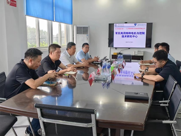 2023年8月28日,吴命利经理带队赴江苏泰州走访江苏微特利电机股份有限公司,并与海陵区发改委副主任兼海陵区军民融合办主任李维辰、军工融合办科长花蕾、罡杨镇镇长葛舟、微特利公司总经理李秋生等领导就校企合作、科研合作、人才培养、公司产品基地、本科实习基地等议题进行了深入探讨和交流。电机与电器研究所所长曹君慈和李栋老师一同参加。