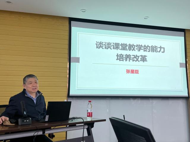 张星臣教授作了主题为“谈谈课堂教学的能力培养改革”的专题报告,分别从以员工为中心的能力培养机制转变、产出导向的课程目标能力教学改革、针对能力培养的课堂教学内涵改革、提升复杂工程问题解决能力的改革四个方面进行阐述,以幽默风趣、通俗易懂的方式展开,老师们受益匪浅。