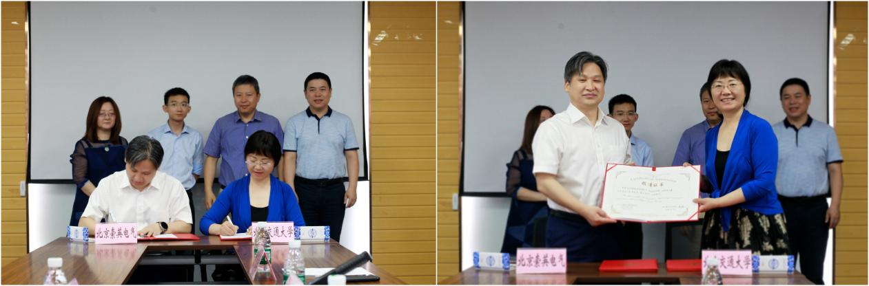 王仕城介绍了自己的创业初心、企业文化、发展历程、重要业绩和未来愿景,向学校和学院对索英电气的认可表示感谢。王仕城表示,人才是推动企业发展的核心要素,高校的科研成果也是帮助企业进一步提升科技内涵的重要助力,北交大电气学院向企业输送的优秀毕业生展现出扎实学术功底、过硬的动手能力、大胆的创新精神以及端正的品行修养,是对学校、学院高质量人才培养的最好证明,期待今后能与校、院携手共同搭建人才成长的成功桥梁,实现人才与企业的协同发展。
